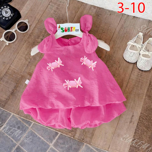 A508756 - Sét nơ áo thiết kế nơ 2 bên vai đính phụ kiện kẹo với quần váy may tùng bí_Size 3-10