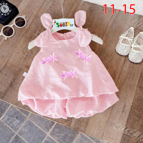 A508761 - Sét nơ áo thiết kế nơ 2 bên vai đính phụ kiện kẹo với quần váy may tùng bí_Size 11-15