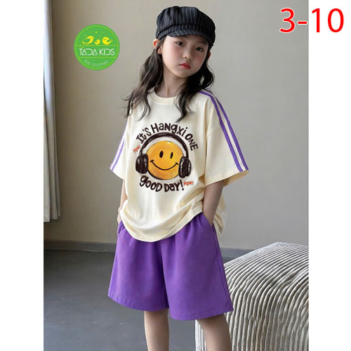 A508998 - Bộ cotton bé gái siêu kute áo phom vừa mix quần dáng suông lửng sành điệu in Kitty mặt cườ
