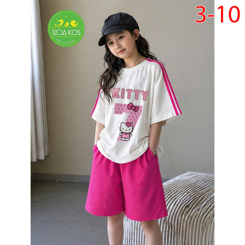 A509003 - Bộ cotton bé gái siêu kute áo phom vừa mix quần dáng suông lửng sành điệu in Kitty mặt cườ