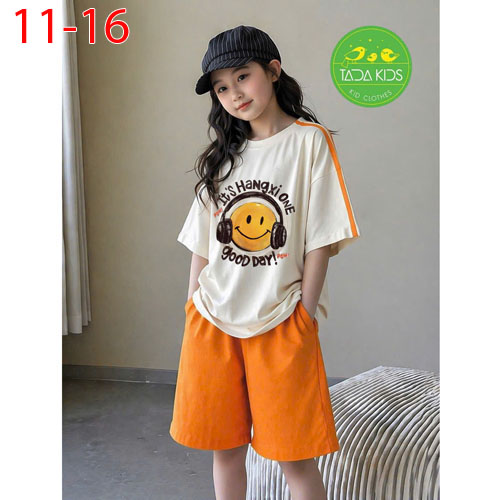 A509024 - Bộ cotton bé gái siêu kute áo phom vừa mix quần dáng suông lửng sành điệu in Kitty mặt cườ