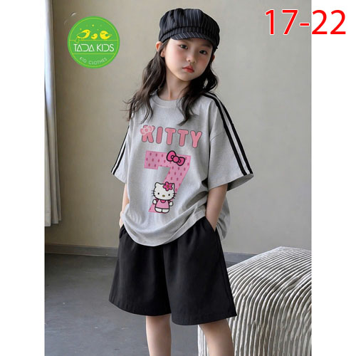 A509028 - Bộ cotton bé gái siêu kute áo phom vừa mix quần dáng suông lửng sành điệu in Kitty mặt cườ