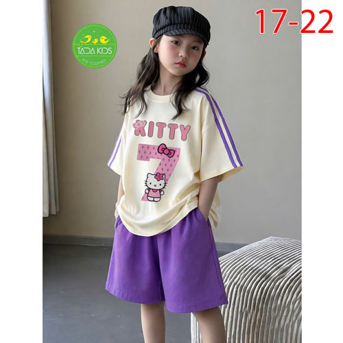 A509034 - Bộ cotton bé gái siêu kute áo phom vừa mix quần dáng suông lửng sành điệu in Kitty mặt cườ