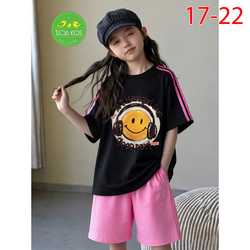 A509038 - Bộ cotton bé gái siêu kute áo phom vừa mix quần dáng suông lửng sành điệu in Kitty mặt cườ