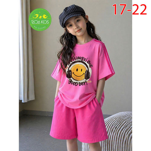 A509039 - Bộ cotton bé gái siêu kute áo phom vừa mix quần dáng suông lửng sành điệu in Kitty mặt cườ