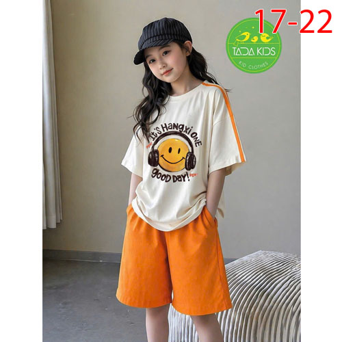A509040 - Bộ cotton bé gái siêu kute áo phom vừa mix quần dáng suông lửng sành điệu in Kitty mặt cườ