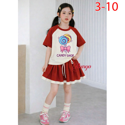 A509244 - Set váy dễ thương cho mẹ bé thun cotton 4c in kẹo nơ chân váy có chip_Size 3-10