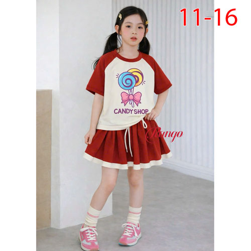 A509253 - Set váy dễ thương cho mẹ bé thun cotton 4c in kẹo nơ chân váy có chip_Size 11-16