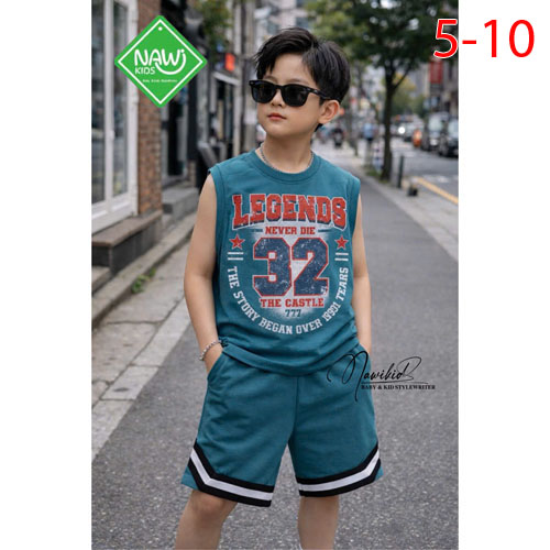 A511102 - Set bộ sát nách bé trai cool ngầu thun cotton 4c quần chạy dây nhập QC in số 32_Size 5-10