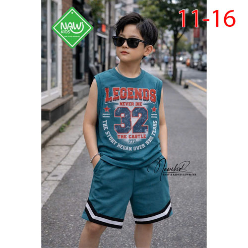A511105 - Set bộ sát nách bé trai cool ngầu thun cotton 4c quần chạy dây nhập QC in số 32_Size 11-16