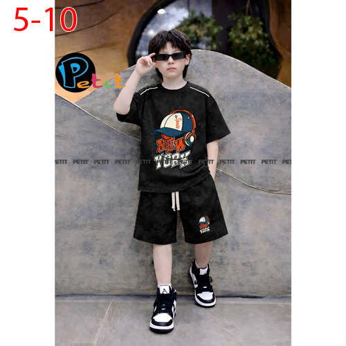 A511114 - Set áo tay ngắn wash loang cá tính quần lững thun cotton 4c in nón in chữ_Size 5-10