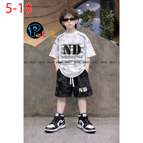 A511116 - Set áo tay ngắn wash loang cá tính quần lững thun cotton 4c in nón in chữ_Size 5-10
