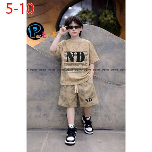 A511117 - Set áo tay ngắn wash loang cá tính quần lững thun cotton 4c in nón in chữ_Size 5-10