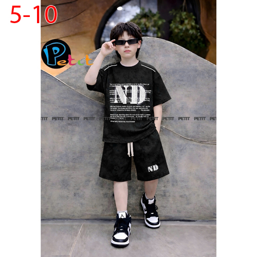A511118 - Set áo tay ngắn wash loang cá tính quần lững thun cotton 4c in nón in chữ_Size 5-10