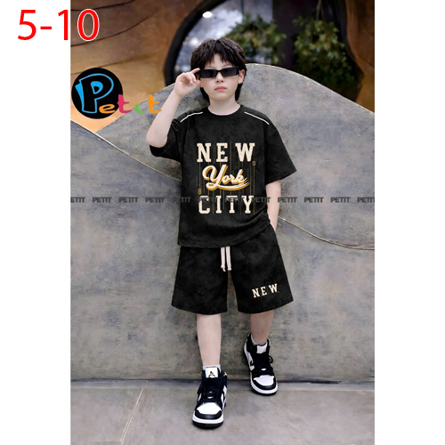 A511121 - Set áo tay ngắn wash loang cá tính quần lững thun cotton 4c in nón in chữ_Size 5-10