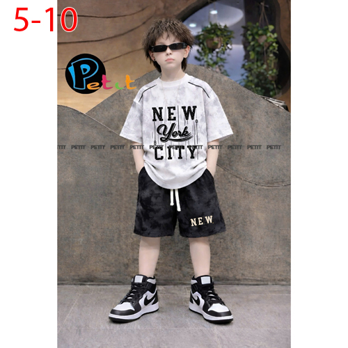 A511125 - Set áo tay ngắn wash loang cá tính quần lững thun cotton 4c in nón in chữ_Size 5-10