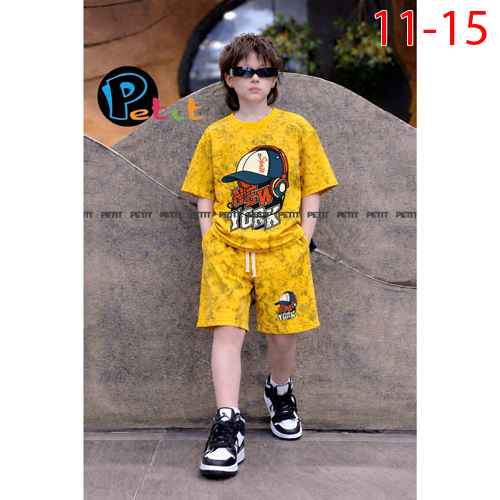 A511128 - Set áo tay ngắn wash loang cá tính quần lững thun cotton 4c in nón in chữ_Size 11-15