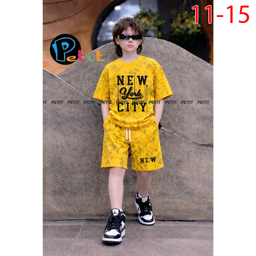 A511129 - Set áo tay ngắn wash loang cá tính quần lững thun cotton 4c in nón in chữ_Size 11-15