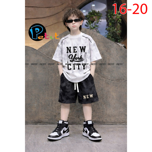 A511138 - Set áo tay ngắn wash loang cá tính quần lững thun cotton 4c in nón in chữ_Size 16-20