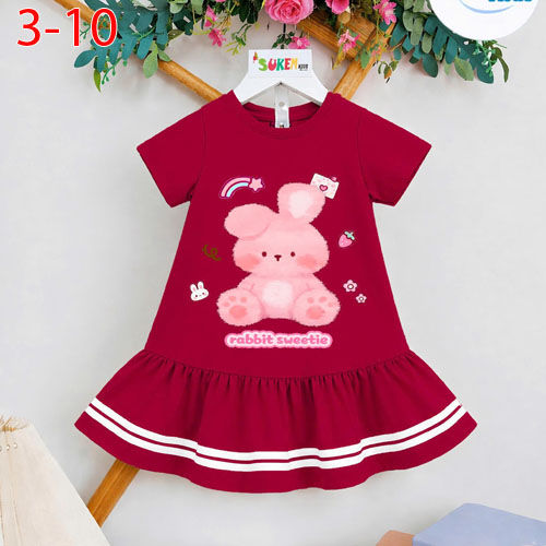 A511321 - Đầm thiết kế cắt nối tùng dáng A đuôi cá chạy dây viền hình ép thỏ_Size 3-10