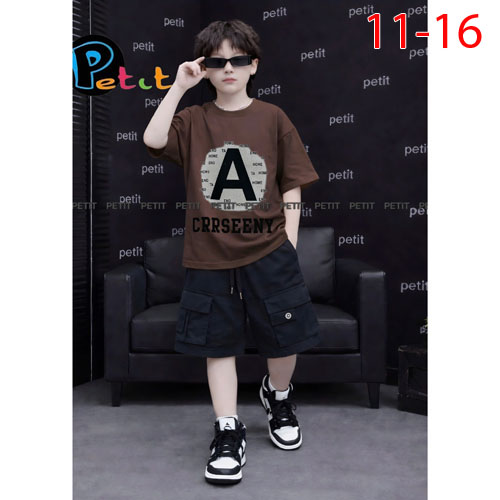 A511477 - Set bé trai phong cách thể thao năng động thun cotton 4c in chữ A in tổng hợp_Size 11-16