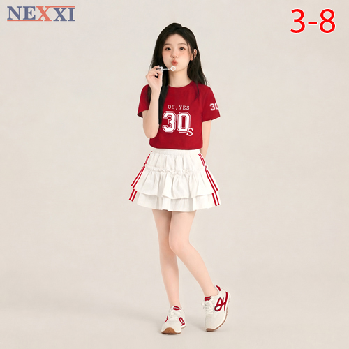 A511718 - Nexxi set váy siêu xinh áo chất thun co giãn 4C in số 30 chân váy xòe viền sọc vải kaki co
