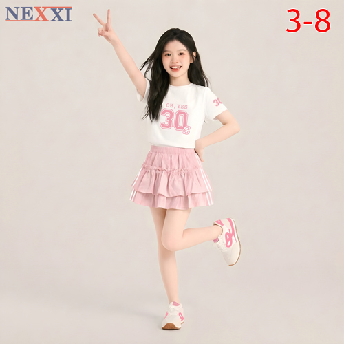 A511719 - Nexxi set váy siêu xinh áo chất thun co giãn 4C in số 30 chân váy xòe viền sọc vải kaki co