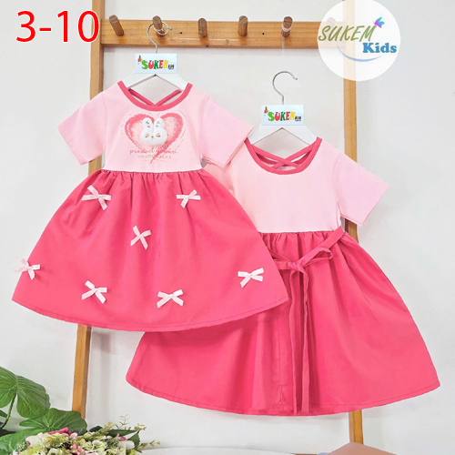 A511731 - Đầm cắt phối vải thun 4c đính cham thỏ phụ kiện tùng vải coton thái đính nơ_Size 3-10