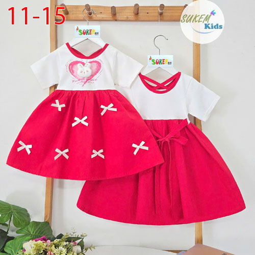 A511736 - Đầm cắt phối vải thun 4c đính cham thỏ phụ kiện tùng vải coton thái đính nơ_Size 11-15