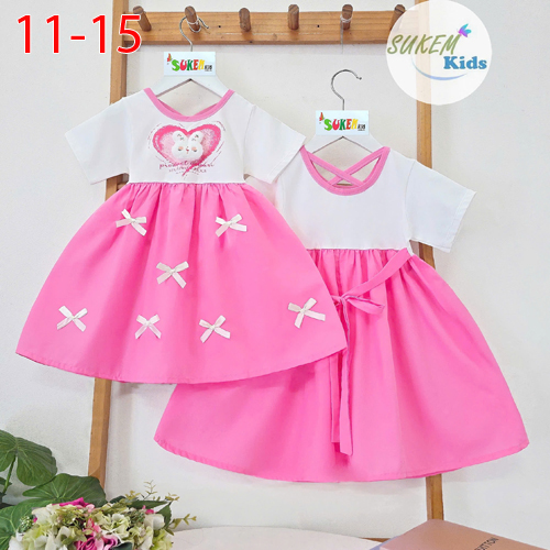 A511738 - Đầm cắt phối vải thun 4c đính cham thỏ phụ kiện tùng vải coton thái đính nơ_Size 11-15