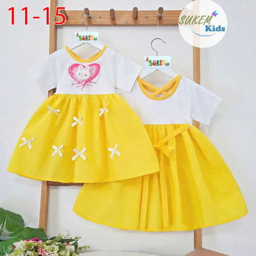 A511739 - Đầm cắt phối vải thun 4c đính cham thỏ phụ kiện tùng vải coton thái đính nơ_Size 11-15