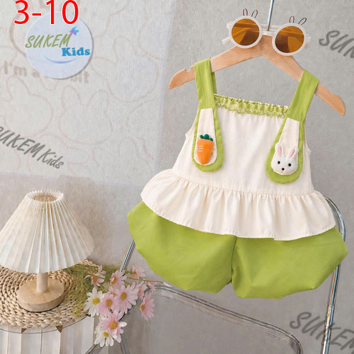 A511746 - Set bí ngô áo may 2 dây đắp tai thỏ 3d dễ thương vải coton thái quần coton thái_Size 3-10