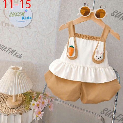 A511748 - Set bí ngô áo may 2 dây đắp tai thỏ 3d dễ thương vải coton thái quần coton thái_Size 11-15