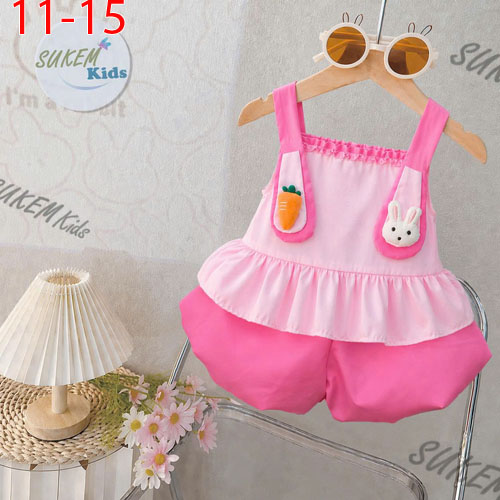 A511749 - Set bí ngô áo may 2 dây đắp tai thỏ 3d dễ thương vải coton thái quần coton thái_Size 11-15
