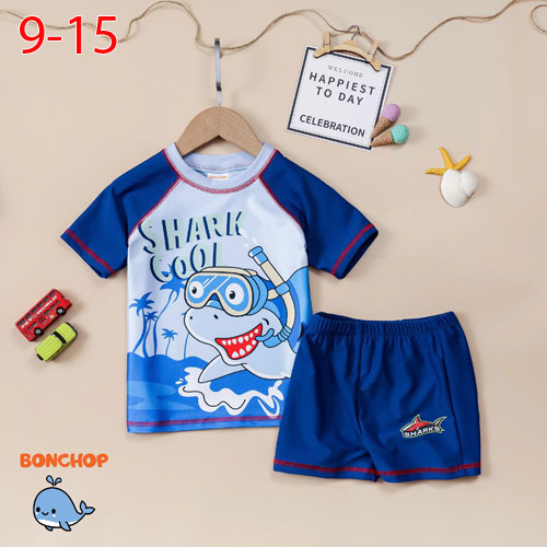 A511840 - Bộ bơi bé trai SPORT vải bơi co giãn tốt hoạ tiết siêu nổi THE SHARK BEACH_Size 9-15