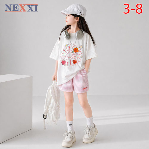 A511869 - (15/5)Nexxi Outfit chuẩn Hello Summer cho bé gái áo thun cotton 4c in cánh hoa quần sọt vả