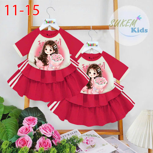 A464020 - (25/10)Sét váy áo ngắn tay ráp lăng ép cô gái chibi chân váy may nhún 2 tầng chạy dây viền