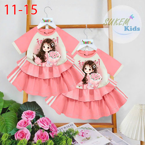 A464021 - (25/10)Sét váy áo ngắn tay ráp lăng ép cô gái chibi chân váy may nhún 2 tầng chạy dây viền