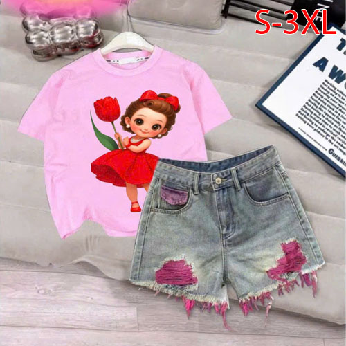 A466425 - Set cho mẹ và bé áo chất thun cotton hình in cô bé quần lưng thun được may chất rin cotton