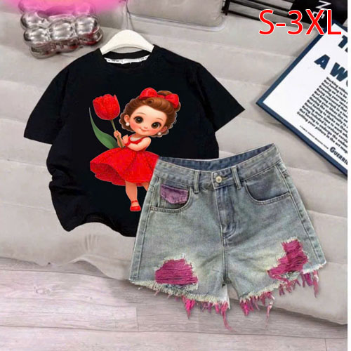 A466435 - Set cho mẹ và bé áo chất thun cotton hình in cô bé quần lưng thun được may chất rin cotton