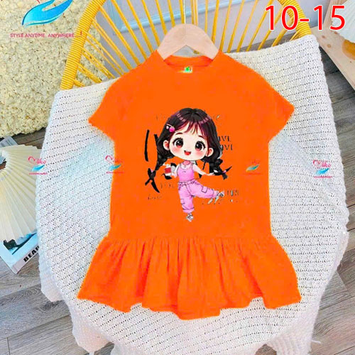 A466495 - Đầm xinh yêu cho mẹ và bé thun cotton 4c in cô bé_Size 10-15
