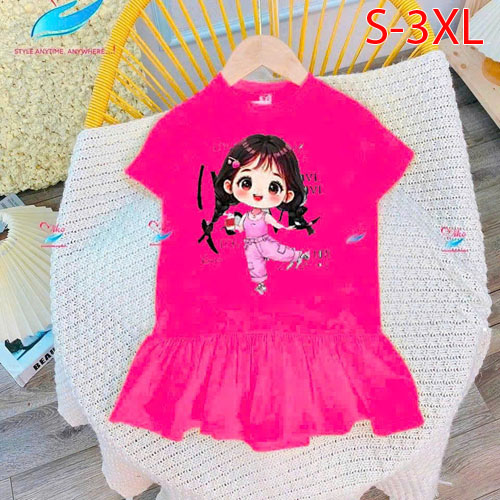 A466501 - Đầm xinh yêu cho mẹ và bé thun cotton 4c in cô bé_Size S-3XL