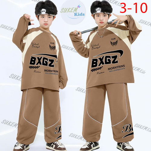 A466563 - (5/11)Bộ thun dài tay phong cách hip hop Quảng Châu cắt phối thể thao in BXGZ_Size 3-10