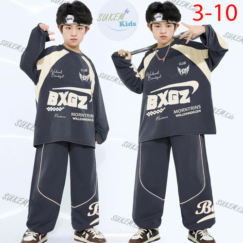 A466568 - (5/11)Bộ thun dài tay phong cách hip hop Quảng Châu cắt phối thể thao in BXGZ_Size 3-10