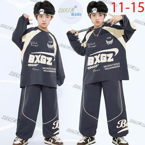 A466569 - (5/11)Bộ thun dài tay phong cách hip hop Quảng Châu cắt phối thể thao in BXGZ_Size 11-15