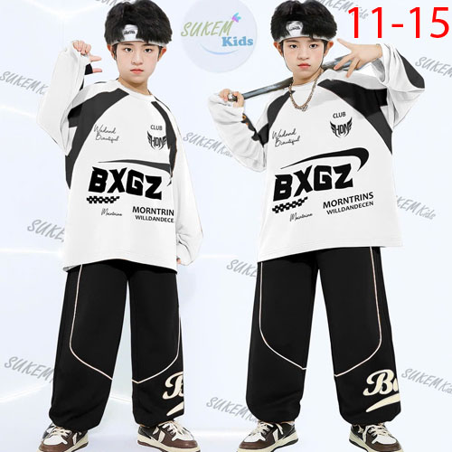 A466571 - (5/11)Bộ thun dài tay phong cách hip hop Quảng Châu cắt phối thể thao in BXGZ_Size 11-15