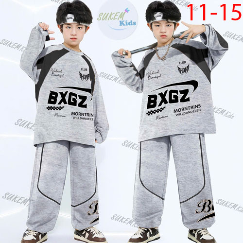 A466572 - (5/11)Bộ thun dài tay phong cách hip hop Quảng Châu cắt phối thể thao in BXGZ_Size 11-15