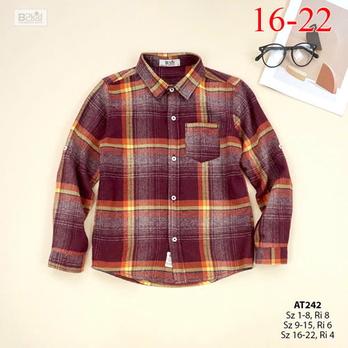 A466682 - Áo sơ mi dài tay thiết kế tinh tế tạo phong cách thanh lịch cho bé trai vải nỉ mỏng caro_S