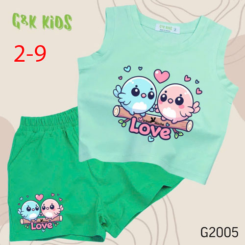 A458617 - Bộ quần đùi áo sát nách bé gái chất thun coton 4c in 2 chú chim LOVE_Size 2-9
