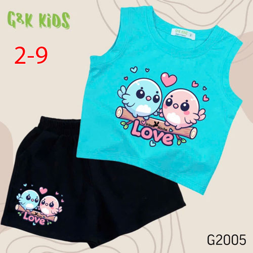 A458620 - Bộ quần đùi áo sát nách bé gái chất thun coton 4c in 2 chú chim LOVE_Size 2-9